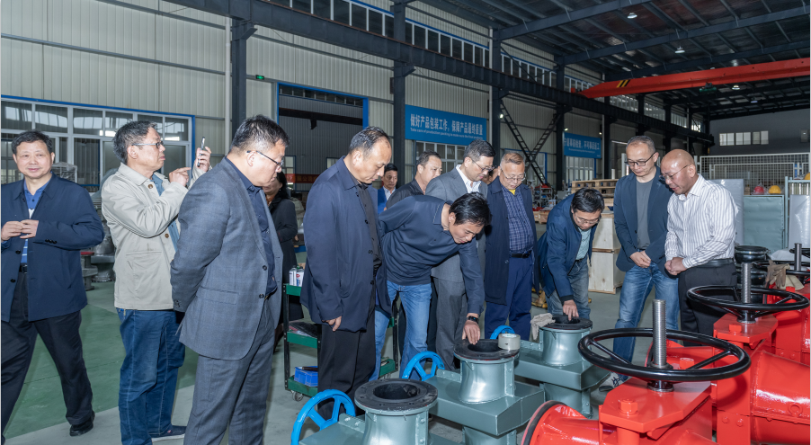蕪湖耐得膠管閥業(yè)有限公司董事長王文軍向與會(huì)藝術(shù)家們介紹企業(yè)生產(chǎn)情況