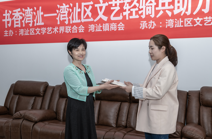 灣沚區(qū)評論家協(xié)會(huì)副秘書長尹海梅為企業(yè)贈(zèng)書